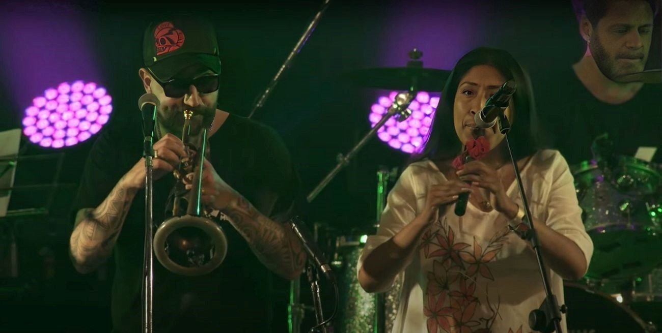 Lobo y Micaela Chauque, invitada en “África”, el primer single de “En vivo en la Sala”, grabado meses atrás en la Sala Siranush de Buenos Aires. Foto: Captura de pantalla