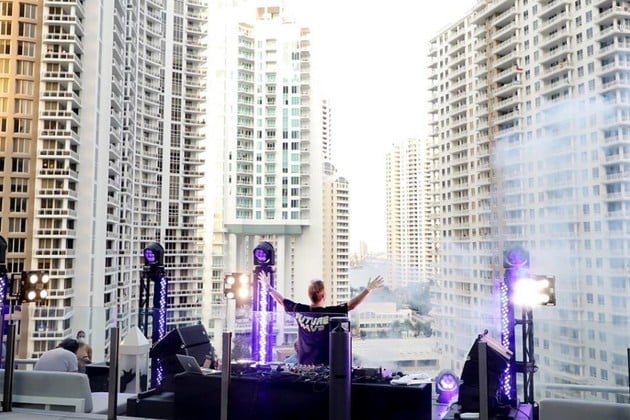 El concierto se desarrolló en la terraza de un condominio ubicado en la zona financiera de Brickell y, además de ser disfrutado por los vecinos del lugar, fue transmitido a través de sus redes sociales.