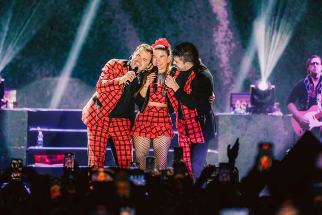 Camila Bordonaba, Felipe Colombo y Benjamín Rojas en el Erreway World Tour 2025 - Juntos Otra Vez, reconectando con sus fans de siempre. Foto: Gentileza Dale Play Live / Chule Valerga