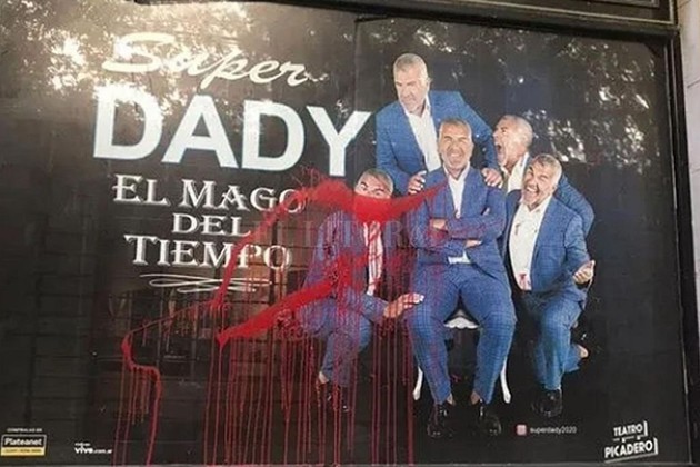 La sala donde se realizaría la obra de Dady Brieva fue atacada y escrachada. El Teatro Picadero, donde se presenta el humorista, apareció con los carteles sucios. Les tiraron pintura de color rojo y también excrementos.