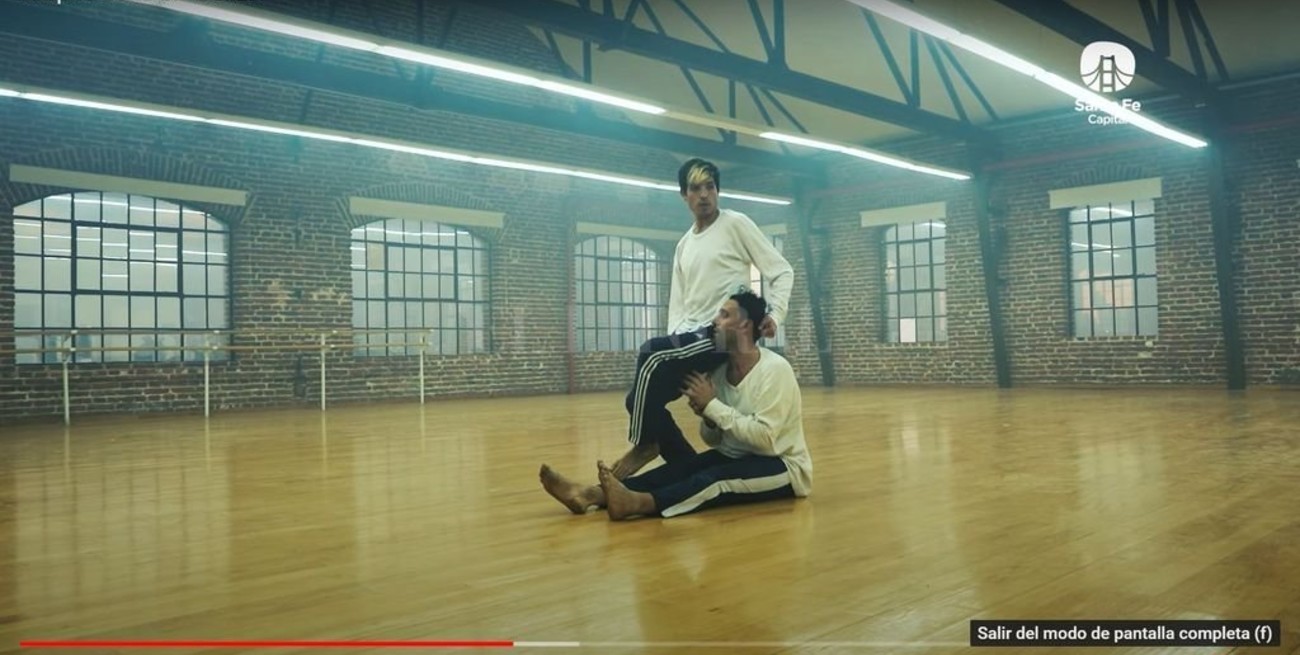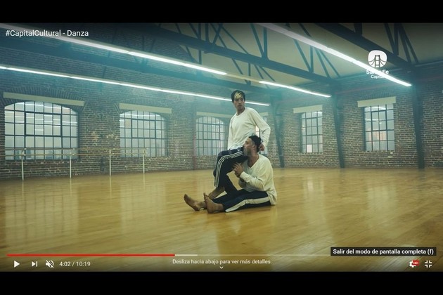 Captura canal de Youtube Capital Cultural Gastón Onetto y Antonio Rocha Testoni diagramaron para Capital Cultural una secuencia con elementos de danza contemporánea, acrobacia y teatro. Ambos integran la Compañía Rojo Cardumen y el grupo LAT.