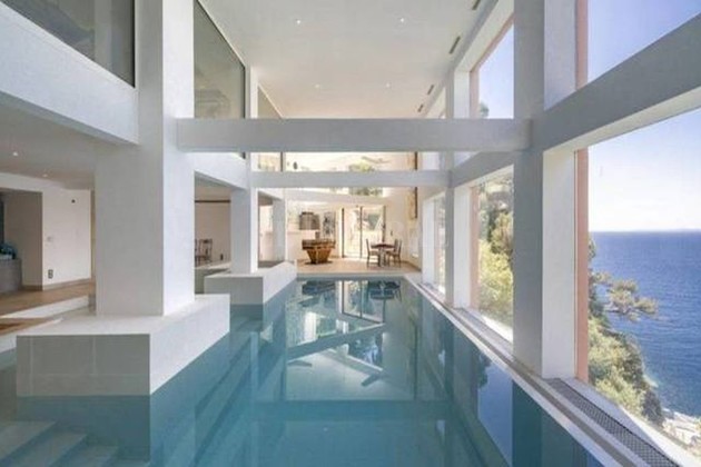 El nivel inferior cuenta con un complejo de fitness con gimnasio y una piscina cubierta que se abre a los jardines, las duchas y los vestidores. Además hay otra piscina exterior, en este caso de agua salada. Sin duda, una casa única que no en vano ha sido en el pasado visitada por personalidades como Coco Chanel, Picasso o Grace Kelly.