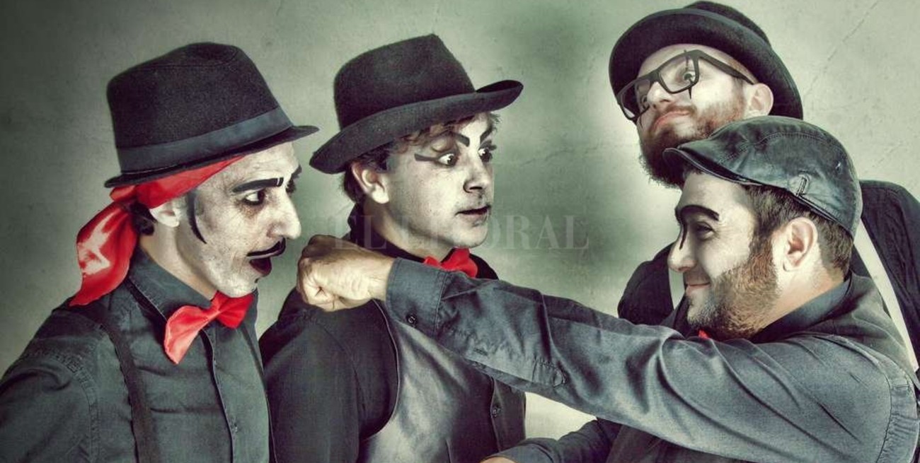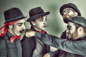 —Bueno, yo creo que no nos presentaríamos, simplemente tocaríamos. Que es un poco lo que hacemos, nosotros generalmente irrumpimos en un lugar, aparecen cuatro personajes con la cara blanca, con una estética de cine mudo, y aparecemos tocando. No hablamos ni cantamos. El lenguaje de la palabra no existe, sino que está el lenguaje de la música, del cuerpo y del humor. Pero jugando a responder a la pregunta, seríamos un cuarteto escénico musical que además conjuga el lenguaje del cuerpo y del humor. Un producto un poco único en su estilo, al menos en estas coordenadas.