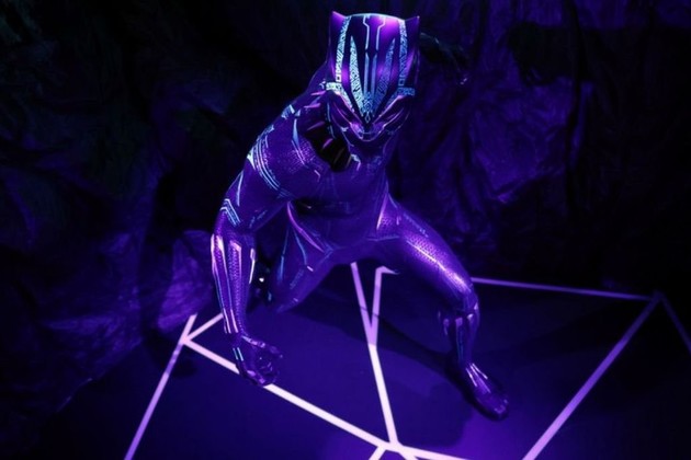 El ficticio rey de Wakanda, T´challa, está vestido con su distintivo traje de Black Panther, con un "efecto vibranium" incorporado que hace que el traje se ilumine en púrpura cuando los visitantes lo tocan. Vibranium es el metal imaginario extraído en Wakanda en el cómic de Marvel.