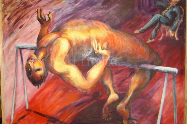En ellos, con ellos, está Sahda de pie. De cuerpo entero. Resolviendo plásticamente una metáfora de vida o, más simple y llana, una medida del cuerpo social que representa cada historia de cada personaje. Sin ser narrativo, el artista nos permite entrar a algunas vidas en calidad de voyeur. Y lo hace con tintas precisas y, sobre todo, honestas. Sin falacias ni usurpaciones. Así, a lo largo de casi cuarenta años, hemos compartido con él -pinturas, dibujos, cerámicas, esculturas, objetos, grabados- toda una secuencia de formulaciones, de períodos, de series, en las que su mirada ha intentado des-cifrar determinado motivo/acción/paisaje social/documento histórico. El ha estado ahí para testimoniar. Silenciosamente. Y sin embargo, obvio es reconocerlo, ha estado ahí y desde su taller ha dado a cada escena su propia interpretación, su clímax, su pathos.