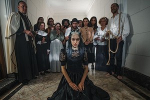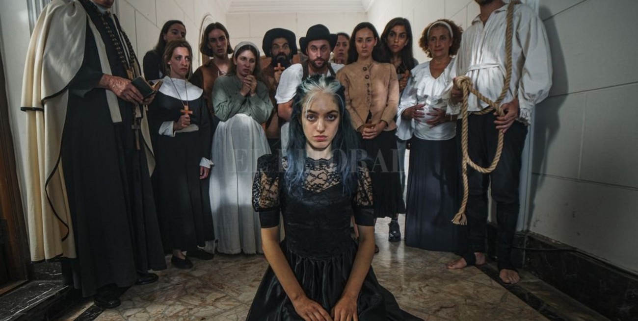 Gentileza producción Preizler junto al elenco del videoclip de la canción Ay Fooo , una turba que la juzga como bruja.
