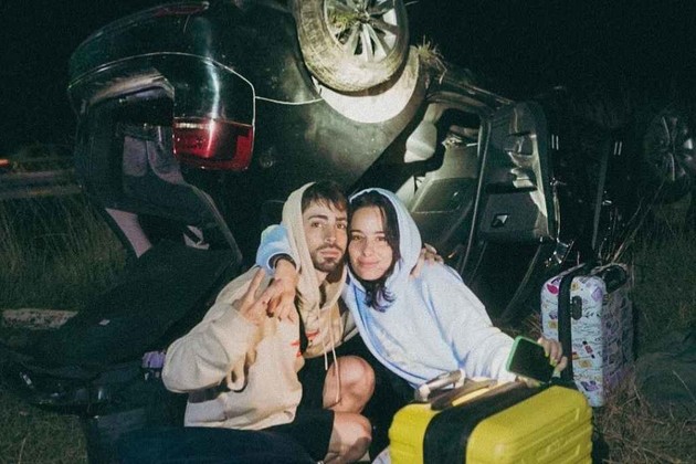 Lo más impresionante fue la postal que acompañó estas palabras: Flor y Agus abrazados, con sus valijas en las manos y el auto volcado a sus espaldas.