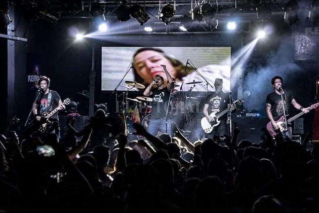 Gentileza Al Dana Fotografía Sebastián Ambesi, Ciro Pertusi, Ray Fajardo (al fondo) y Mauro Ambesi, en una de sus presentaciones prepandémicas.