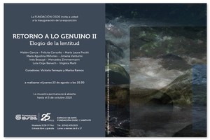 Maillén García, Felicita Carsofio, María Laura Pacitti, Maria Agustina Miñones, Jmena Venturini, Inés Beaugé, Mercedes Zimmermann, Lola Orge Benech y Virginia Martí, fueron convocadas por Marisa Ramosb y Victoria Ferreyra, para exponer, presentar, “Retorno a lo genuino II, Elogio de la lentitud”