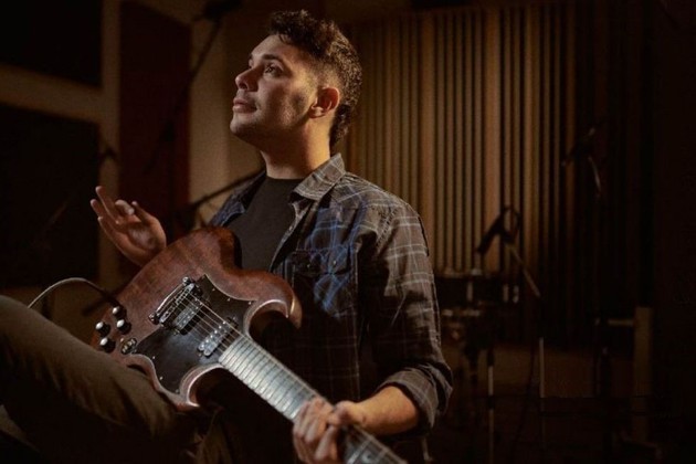 Gonza en el estudio con su guitarra: así empezó a escribir canciones, y reencontrarse con ese tiempo creativo es su “Volver a ser”. Foto: Gentileza producción