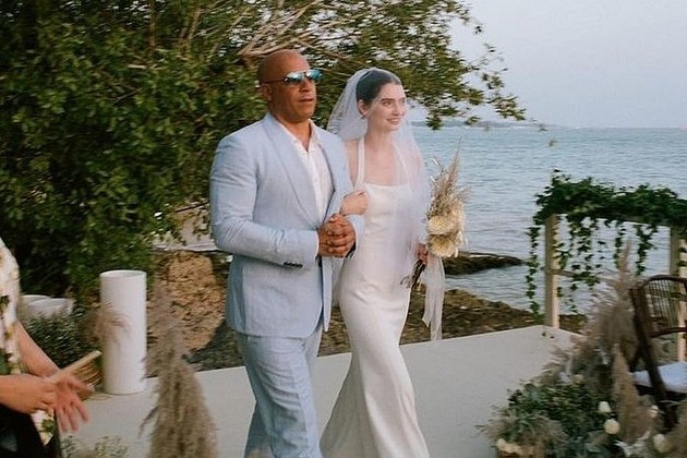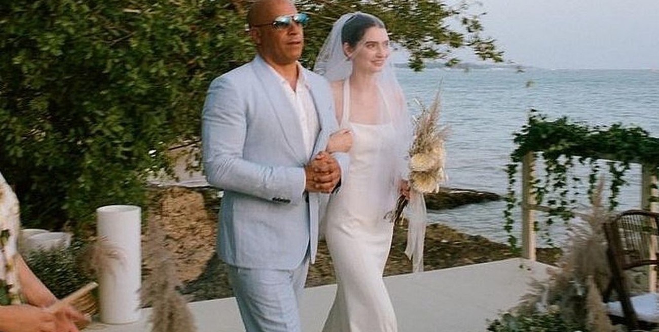 En un fragmento se puede ver a Vin Diesel, tomándole la mano, listo para acompañarla a caminar por el altar.