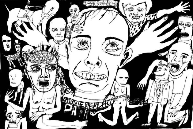 Consultado acerca del soporte de su obra y el proceso creativo, expresó que “el papel tiene su propia voz en la composición, busco altos gramajes que puedan soportar la línea de microfibras, manchas de tinta, crayón y algún esmalte, generando tramas y texturas, por planos de color o esgrafiados. Aparecen también palabras, como murmullos de los personajes que van surgiendo en este ejercicio de creación”.