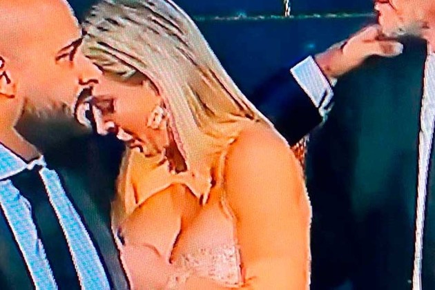 Mientras estaba en el escenario, Jésica Cirio tuvo un accidente con su vestido y dejó al descubierto un seno. El descuido fue advertido por un colega que rápidamente le dijo a la modelo.