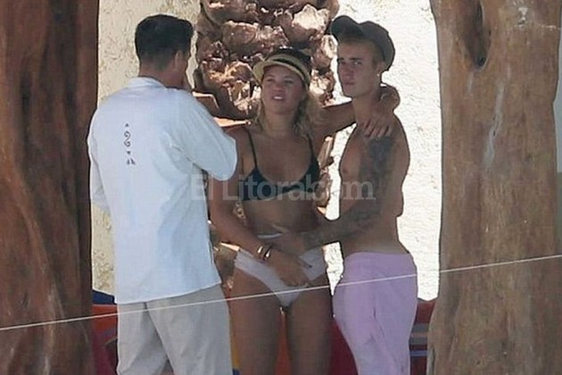 El cantante canadiense fue fotografiado con los pantalones bajos por un paparazzi mientras le hacía arrumacos a su novia.