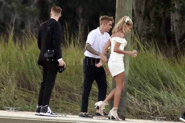 El domingo por la noche ya se pudo ver a los novios en dichos barcos y en un cóctel que celebraron junto a 36 amigos y familiares. Justin Bieber, de 25 años, acudió con un pantalón negro y un polo blanco mientras que Hailey Baldwin, de 22, llevaba un vestido blanco corto, zapatos del mismo color con una gran lazada de tul (de Jimmy Choo, valorados en unos mil dólares) y, en la cabeza, un pequño lazo a juego.