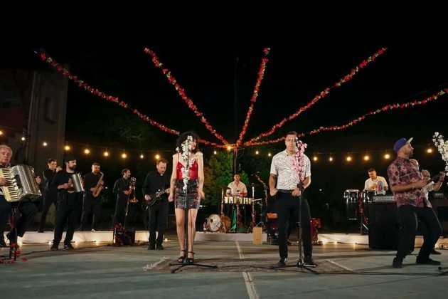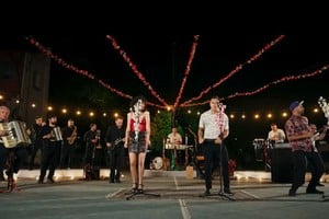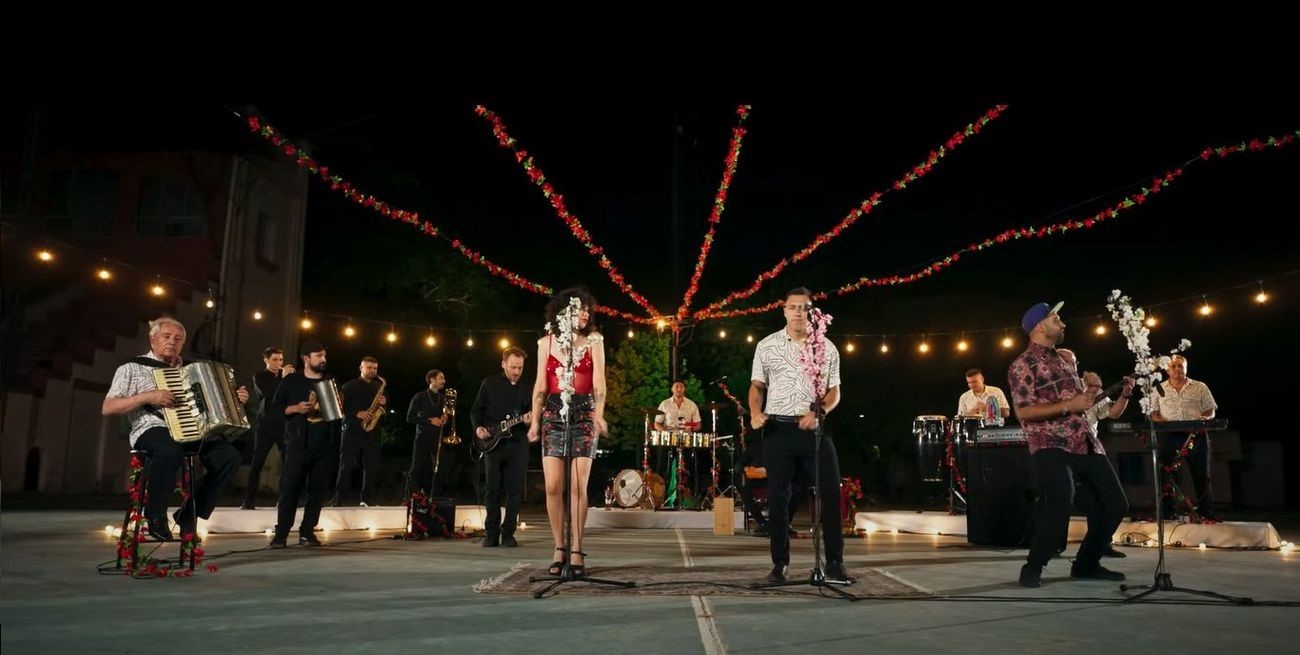 Ensamble: la doble formación en el videoclip de “Lávate la cara”, con las voces de Inés Kalbermatten, Brandon Oviedo y Jonatan Kreimer, y el maestro Enzo Galassi en el acordeón. Foto: Captura de pantalla