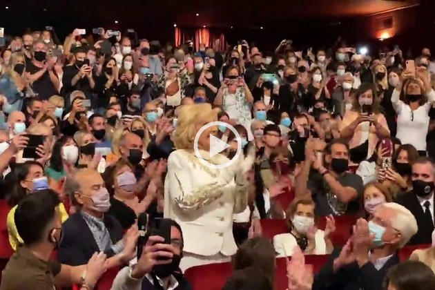 La legendaria estrella llegó a la sala acompañada por dos amigas y por el modisto Gino Bogani y fue recibida con aplausos de pie y distintas manifestaciones de cariño por parte de los espectadores que colmaron la sala.