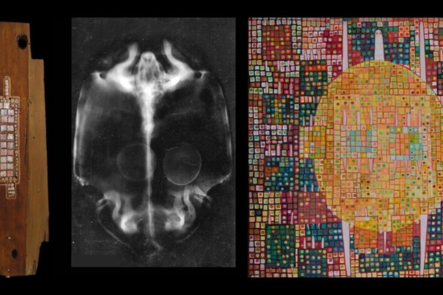 “Las tortugas aparecen cuando investigando teóricamente sobre cuadrados mágicos encontré que en la china asociaban los dibujos del caparazón con matrices numéricas. Estos datos sobre los caparazones se convirtieron en la base de la numerología china y de la astrología, además de la base del Feng Shui y el I Chin. Estos números y su colocación cobraron un significado simbólico de predicción de los cambios en la tierra y en el cielo, y por lo tanto una especie de oráculo y amuletos”, destacó la artista.