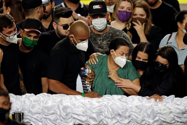 Su cuerpo fue trasladado en avión el sábado a Goiania, su ciudad natal, capital del estado central de Goiás. Grandes multitudes de fanáticos acudieron en masa a un estadio donde se llevó a cabo un velorio público masivo.
