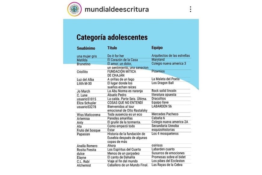 Divididos en dos equipos, los jóvenes participaron en la categoría adolescentes del XI Mundial de Escritura, competencia organizada por el Club Chasco. La misma invita a escribir durante dos semanas, con consignas que cambian cada día y un sistema de puntajes basado en la regularidad y el cumplimiento.