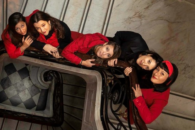 Srta. Miraflores Kinteta, conformada por Luisina Forzani en bajo, Eve Monk en percusión, Ayelén Atataa en guitarra, Luisina Gioria en flauta traversa y Amanda Miraflores en voz, trabaja sostenidamente desde el 2021, haciendo eje en la labor colectiva, autogestiva e independiente. En este Concierto con el que llegan por primera vez a la Sala Mayor del Centro Cultural Provincial Francisco ‘Paco’ Urondo, la propuesta artística musical se nutre y fortalece con el trabajo técnico de un equipo de mujeres santafesinas dedicadas a la ingeniería de sonido, iluminación, fotografía, filmación y producción.