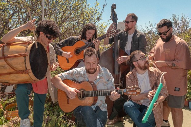 Además de los fundacionales hermanos Dirrheimer (Nahuel en guitarra y Santiago en bajo y contrabajo) en la nueva formación se suman Pedro Velázquez en teclados, Sebastián Vega en guitarra criolla y eléctrica, Franco Rolleri en percusión y Felipe Campilongo en batería. Foto: Gentileza Yaco El Fotógrafo