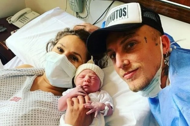 La llegada de la beba se da en plena cuarentena por coronavirus por lo que en las imágenes se puede ver a la feliz pareja con barbijos. Las fotos fueron tomadas desde la habitación del establecimiento de salud.