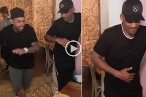 El estadounidense se encuentra en Colombia y la noche del domingo coincidió con el cantante Nicky Jam en una cena en la ciudad de Cartagena, en la que ambos aprovecharon la oportunidad para bailar el #Xchallenge frente a la gente.