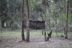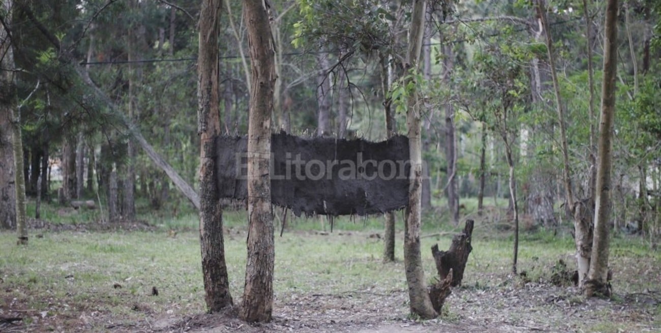 Florencia Sadir (Tucumán): Vine a Curadora buscando alguna contingencia natural. Me encontré en Rincón con los restos de una inundación. Ahí empezó todo. Después de visitar a un vecino, donde la inundación había tirado un fragmento de su casa, me propuse levantar una pequeña quincha con ramas y barro del lugar. Me contacté con constructores de la zona, tenía que aprender la técnica de este sistema constructivo. Mi quincha está suspendida entre tres arboles a la altura de los ojos, irrumpiendo el paisaje en un pequeño bosquecito en San José del Rincón.