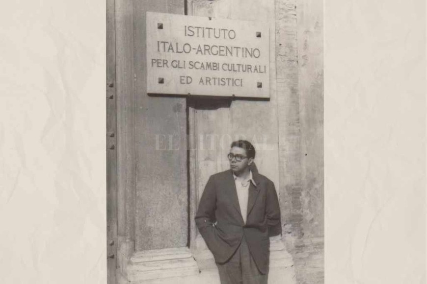 Europa. Un retrato de su primer viaje al viejo continente. Aquí, frente al Instituto Ítalo Argentino de Roma, Italia, en 1950.Foto: Archivo.
