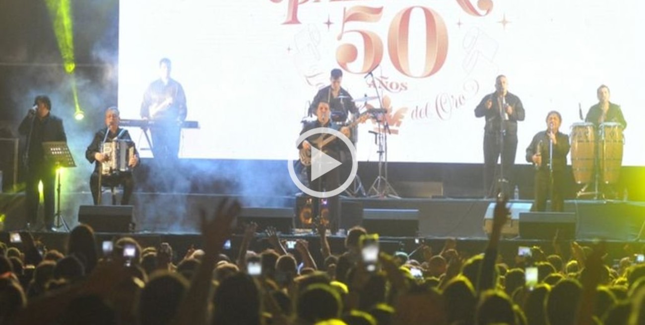 Pasadas las 20.30 comenzó el show de los protagonistas de la noche, uno de los principales grupos de cumbia en la actualidad: Los Palmeras. Fueron recibidos con una ovación por los asistentes y los alegraron al realizar un recorrido musical por la "ruta del oro", ya que la agrupación está festejando sus 50 años de trayectoria.