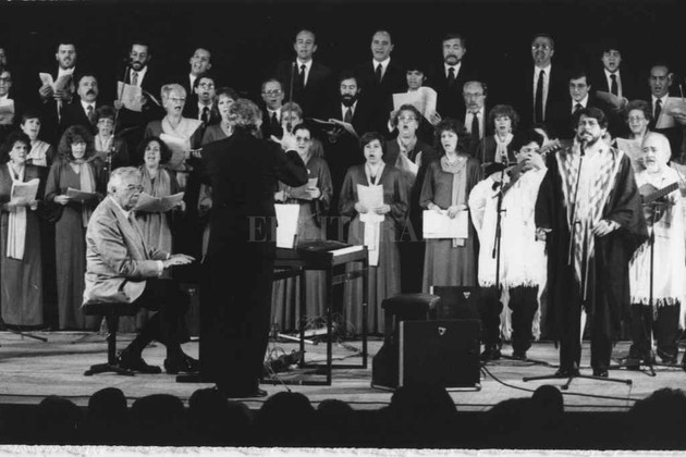 Archivo El Litoral Escenario. El pianista, junto al Coro Polifónico, durante un concierto en su ciudad natal.