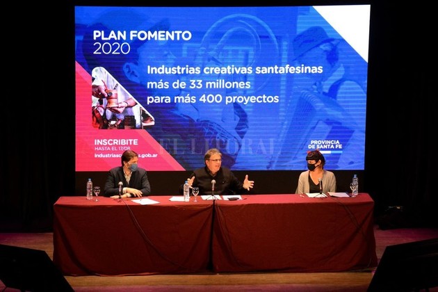 Este jueves, desde la Plataforma Lavardén, el ministro de Cultura de la Provincia de Santa Fe, Jorge Llonch, junto al subsecretario de Industrias Creativas, Félix Fiore, y la directora de Innovación Cultural, Florencia Lattuada, presentaron el Plan Fomento 2020.