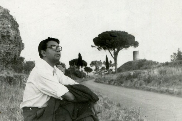 Colección AR Ariel Ramírez en la Via Apia, Roma (Italia), en 1950. El autor de este retrato no fue identificado y la imagen pertenece a la Colección AR del Museo del Teatro Municipal 1° de Mayo.