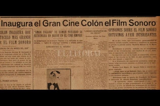 El 18 de marzo de 1930, el Cine Colón inauguró su temporada con la incorporación del film sonoro, novedad que había arribado a la industria pocos años antes. Fue a través de “Sombras blancas en los mares del sur”.