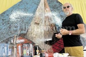 El artista frente a una de sus grandes obras. Fotos: Gentileza Municipalidad de Santa Fe