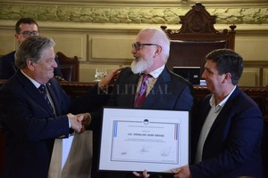 Gentileza Prensa Senado El célebre pastelero recibiendo la distinción de manos del vicegobernador Carlos Fascendini y el senador Pirola.Gentileza Prensa Senado El célebre pastelero recibiendo la distinción de manos del vicegobernador Carlos Fascendini y el senador Pirola.