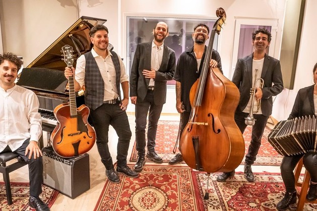 -En cuanto a las voces, con Rodrigo Perelsztein, el cantante del grupo, hace tiempo que teníamos ganas de hacer algo más coral. Yo ya en otros grupos que tengo de folklore y de pop trabajo de esa manera, con más ensambles corales. Entonces la idea fue aplicarlos un poco al tango, en este disco que era bien cancionero, aprovechamos que teníamos estos invitados y además agregamos voces mías. Viene también de una idea que en algún momento habíamos descubierto en el tango brasilero, que existió allá por los 40, los 50, en el que había como dos voces, no un coro, pero había dos voces siempre. Hace tiempo ya teníamos ganas de hacer algo así y como siempre fuimos un grupo abocado a la canción y a lo melódico, aprovechamos este disco para hacer algo en el que no se escuche solo un cantor o, si hay un invitado, que canten una parte cada uno y después armonicen, sino que, por ejemplo, por momentos haya tres o cuatro voces. Pensamos que podía llegar a enriquecer un poco el estilo y estamos muy contentos con el resultado.