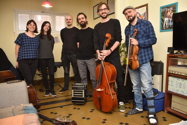 Es un living rodeado por pilas de libros, recuerdos no tan viejos en fotos que cuelgan de la pared, cuadros, discos en formato CD, una planta algo desubicada. En el centro están los instrumentos, las partituras y los músicos. Suena el bandoneón en sus primeros acordes; lo sigue el contrabajo, que a primera vista, por su enorme tamaño puede simular al "charango de un King Kong", y es lo único que parece estar incómodo del lugar, porque todo se siente confortable. Le siguen las notas delicadas de un violoncelo y un violín; el piano al fondo hace lo suyo.