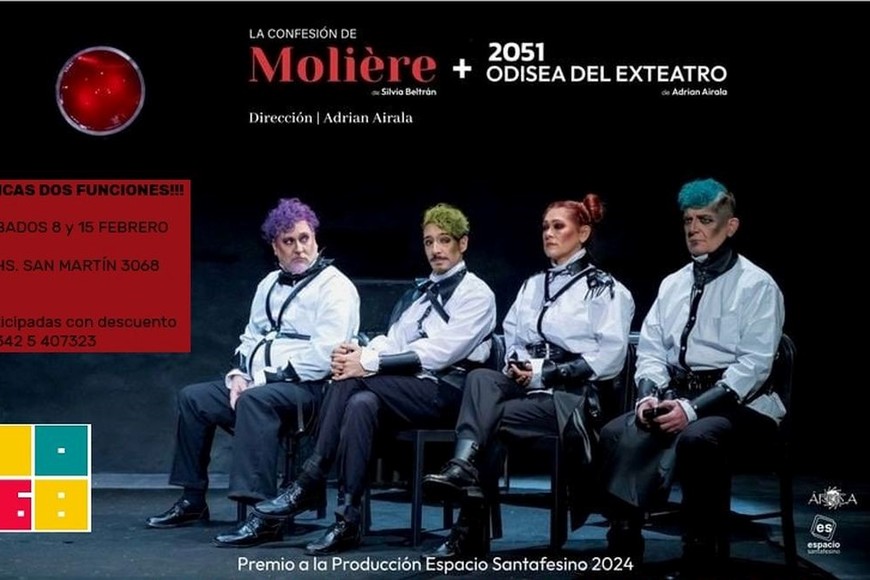 Los días 8 y 15 de febrero a las 21, la 3068 (San Martín 3068) será escenario para os funciones de “La Confesión de Molière + 2051 Odisea del Exteatro”. Un viaje a través del tiempo y del arte, que explora aquello que perdura en la esencia humana a pesar de las eras.