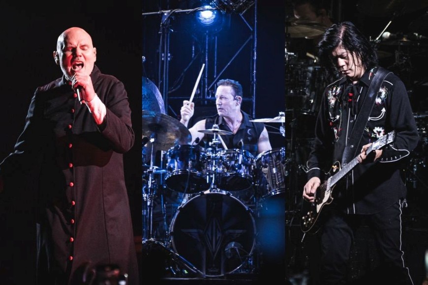 Corgan, Chamberlin e Iha, al frente de los fans que esperaron décadas para verlos juntos. Foto: Gentileza Jonathan Cerri / @jc.fotografiaa