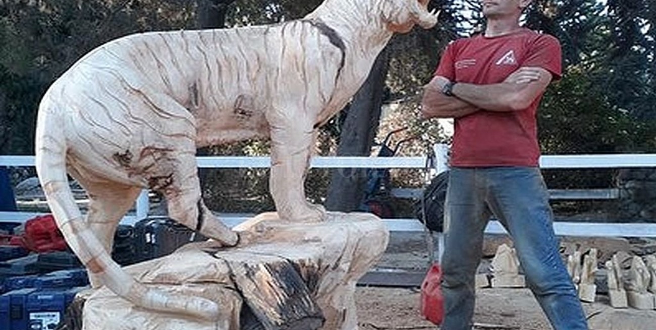 Durante la segunda etapa del “Carving Tour Chile 2020”, llevada a cabo en Parque Safarí, Rancagua, y luego de recorrer el parque la tarea fue elegir un animal y trabajar sobre su figura. Tomás quedó fascinado con el Tigre de bengala Blanco y lo realizó con madera ciprés en un tamaño natural luego de 16 hs de arduo trabajo aproximadamente.