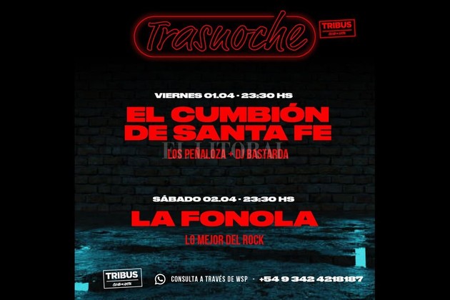 Trasnoche en Tribus continúa este viernes 1 desde las 23.30 con el show de El Cumbión de Santa Fe (Los Peñaloza y DJ Bastarda) y el sábado 2 desde las 23.30 con La Fonola. La entrada para El Cumbión de Santa Fe debe retirarse en boletería de Tribus o en Ticketway y sus puntos de venta (online y físicos) y sólo se abona el valor del servicio.