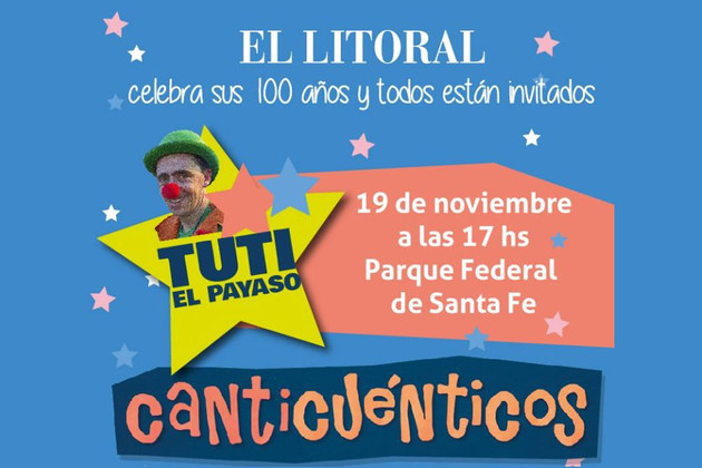 El Parque Federal es el espacio elegido para el espectáculo que desplegará el grupo de música infantil Canticuénticos el lunes 19 de noviembre, feriado, a partir de las 17. Será en el marco de los festejos por los 100 años de El Litoral, con entrada libre y gratuita (únicamente se solicita a los asistentes que colaboren con útiles para la Escuela Salvador Caputto, de El Sombrerito) y la animación estará a cargo del payaso y titiritero Gustavo “Tuti” Núñez.