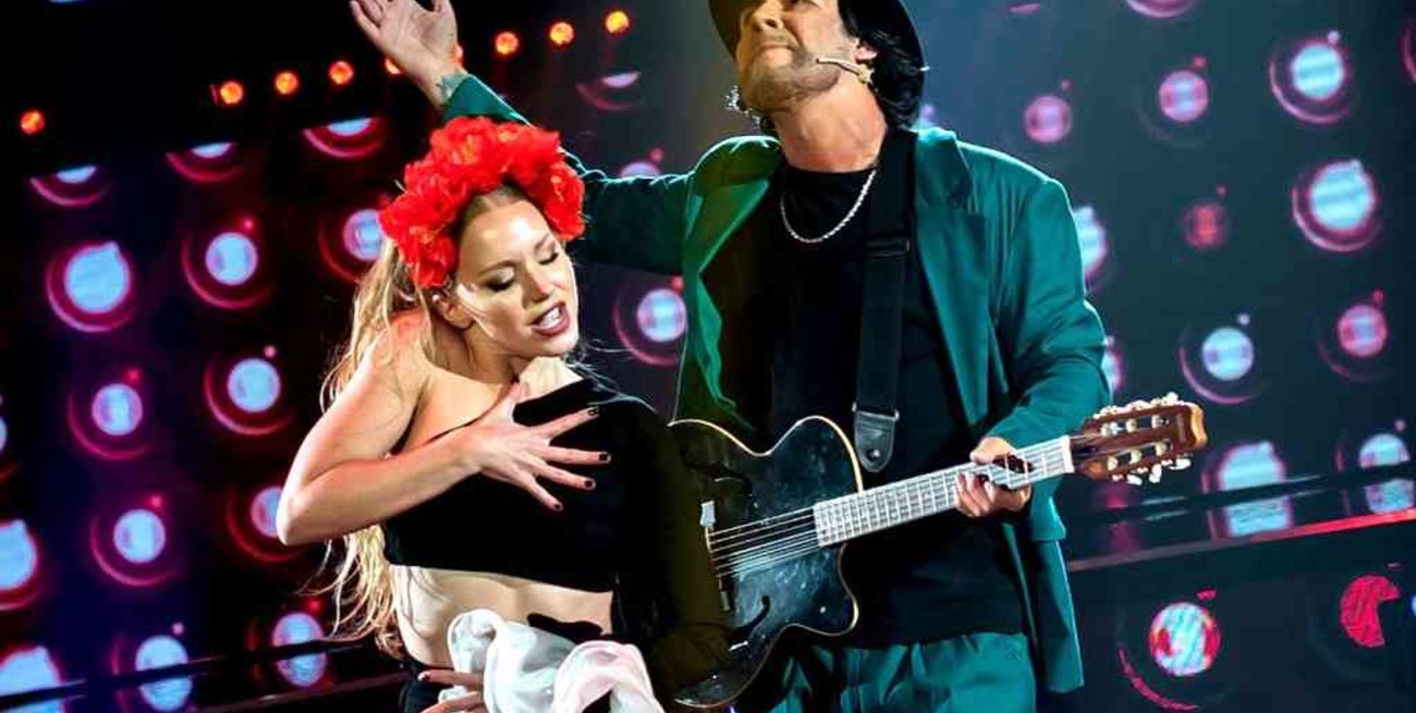 El cantante salió a la pista vistiendo un traje verde y el clásico sombrero que distingue a Sabina, dejando notar su identidad solo por el timbre de su inconfundible voz. “Hace ocho años que no me afeitaba”, bromeó ante las risas de Tinelli. Y explicó que eligió a Sabina “porque no baila”.