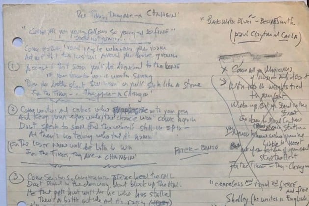 El manuscrito del famoso tema de Bob Dylan "The Times They Are A-Changin´", de 1964, fue puesto a la venta por un coleccionista privado con un precio inicial de 2,2 millones de dólares.
