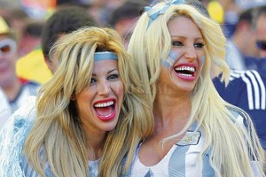 Se trata de una foto de las hermanas Xipolitakis en la tribuna del estadio en al final que Argentina perdió ante Alemania.