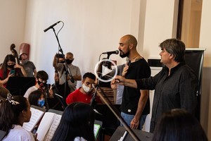 En medio de un ensayo general de la formación dirigida por el Maestro Claudio Corradini en el anexo de la sede del Instituto Superior de Arte del Teatro Colón, Pintos llegó y cantó la zamba “La López Pereyra”.