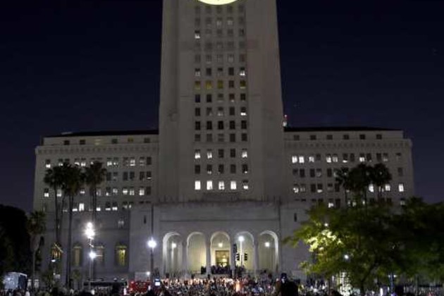 Sobre una pared del histórico edificio del City Hall de Los Ángeles fue proyectada la noche de este jueves la 'batiseñal' como parte de un homenaje al actor Adam West, quien protagonizara la serie original de Batman y falleciera la semana pasada.