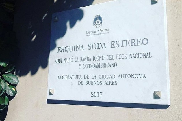 “Esquina Soda Estereo (sic). Aquí nació la banda ícono del rock nacional y latinoamericano. Legislatura de la Ciudad Autónoma de Buenos Aires. 2017", se puede leer en la placa colocada en la que fue vivienda de la familia de Charly Alberti, baterista del grupo, que había cedido una habitación para las primeras operaciones del grupo que completaban el guitarrista y cantante Cerati y el bajista Zeta Bosio.